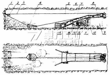 耙斗式裝巖機用在巖巷掘進中配以1.1m3礦車或箕斗進行裝載作業(yè),適于凈高[P-15B(B)、P-30B大于2m, P-60B大于2.4m],凈斷面[P-15B(B)4.5m2、P-30B 6m3, P-60B 9m2以上]的巷道,具有裝巖效率高、結(jié)構(gòu)簡單、可靠性好、應(yīng)用范圍廣等特點,不但可以應(yīng)用于平巷,而且可以在30度以下的斜巷中使用,是提高掘進速度,實現(xiàn)掘進機械化的一種主要設(shè)備。