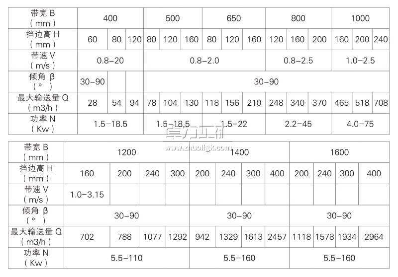 (1)、大傾角輸送機為一般用途的散狀物料連續輸送設備,但采用的是具有波狀擋邊和橫隔板的輸送帶。因此,特別適用于大傾角及垂直90°輸送。