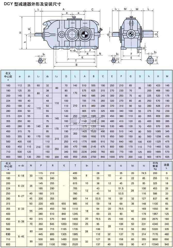 名義中心距為280mm,公稱傳動比為31.5,裝配型式第Ⅲ種,輸入軸順時針方向旋轉的三種傳動減速器標記為DCY280-31.5-ⅢS。