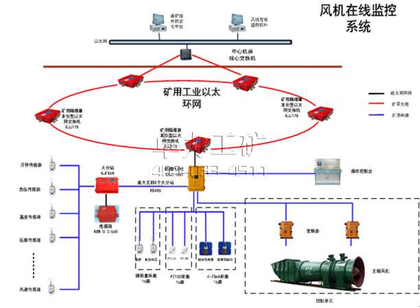 | 2 | 狀態監測 | 實時對礦井主備用通風機的開停狀態、正反風向進行檢測 |