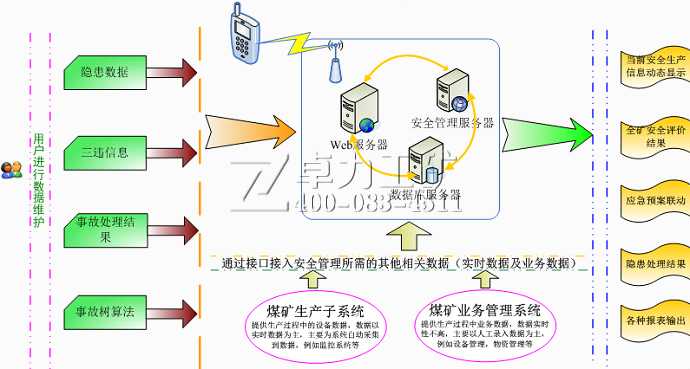 煤礦管理,安全為天! 我公司針對煤礦企業的特性,精心研發出全面、實用的頂板安全管理信息系統。該系統首次采用事故樹分析模型和多指標安全綜合評價法,實現了對事故發生原因的定性分析和事故發生概率的分析、預測以及礦井安全的多指標評價,使安全隱患的處理時間大大縮短,有效降低了各類事故的發生,提高了全礦井的安全等級,對規范日常管理和預防事故的發生起到了至關重要的作用。系統從事前風險預控(危險源辨識、安全證件管理、人員走動巡查),到事中事件的跟蹤處理(安全隱患閉環管理、三違管理),以及最終的安全考核與評估分析等一系列功能,從人、機、環境方面實現了安全工作的量化管理,為煤礦企業打造本質安全型礦井,提供有力、可靠的支持!