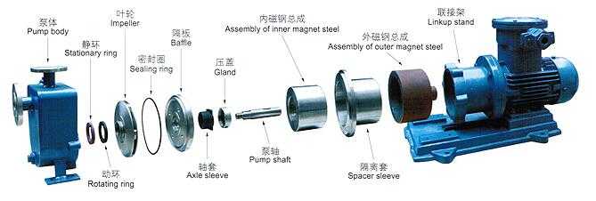 ZCQ 型自吸磁力泵結構緊湊,外形美觀,體積小,噪音低,運行可靠,使用維修方便,可廣泛用于石油、化工、制藥、電鍍、印染、食品、科研等單位抽送酸、堿、油 類及稀有貴重液體、毒液、揮發性液體,以及循環水設備配套,特別是易漏、易燃、易爆液體的抽送。因此,它是有廣泛的用途,我們真誠地向用戶推薦這種產品。